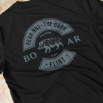 A brand new design as part of our "Fear Not The Dark" collection on our classic charcoal t-shirt. Inspired by the thrill of boar hunting late at night here in the UK and the challenge of tracking such an elusive animal. Printed in slate grey against black to give a moonlit contrast.