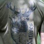 This design is a celebration of the native deer species we have here in the United Kingdom; red and roe deer. With both species surviving the last ice age some 11,000 years ago, we felt it was worth celebrating our two native species in this contemporary design. The choice of an Old English font is a deliberate nod to the heritage of these beautiful animals and the food, tools and other resources they have provided for thousands of years.