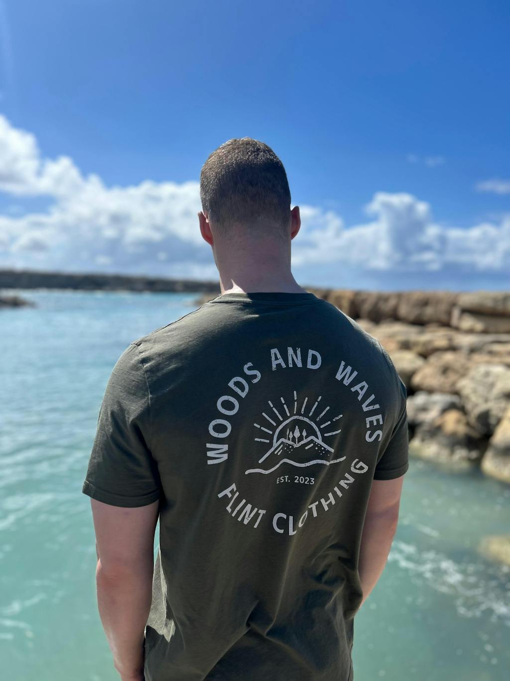 Our Classic Woods & Waves t-shirt celebrates hunting and fishing culture with a subtle nod to the full spectrum of environments we hunt in. From deerstalking in the woods to spearfishing in the sea, and everything in between.
