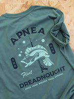 Apnea Dreadnought, "Hold your breath and fear nothing". An energetic stylised bass atop a speargun celebrating the best of British spearfishing. Whether you are diving the South-West, Welsh or Scottish coastline make sure this tee is on standby when you are BBQ'ing your catch after a day in the sea.