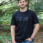 Printed in a black-on-black finish, the artwork is intentionally understated—mirroring the near-invisible silhouettes of ducks against a fading sky. The result is a t-shirt that rewards a closer look, designed for those who understand the quiet moments and hidden details of the hunt.